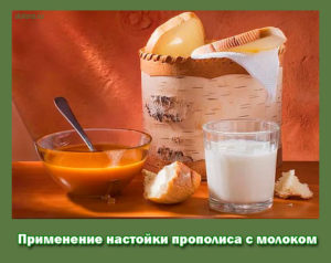 Прополисная настойка с молоком используется взрослыми для лечения простудных и желудочных заболеваний. Для этого в стакане теплого молока растворяют несколько капель спиртового состава и выпивают на ночь. После приема лечебного состава желательно сразу отправиться в кровать. Лечение продолжается до полного выздоровления, однако нужно отметить, что при постоянном применении снижается эффективность средства, поэтому периодически нужно делать перерывы.